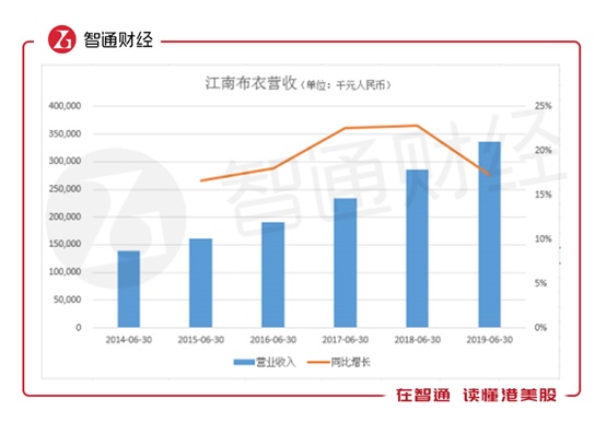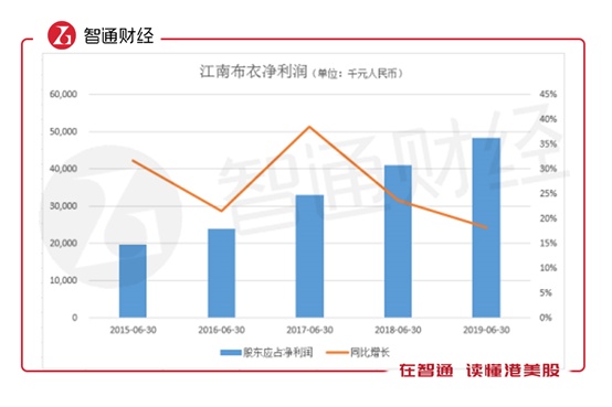 全品牌的增长撑起了江南布衣17.3%的营收同比增长,但是过去五年公司的同比营收分别为16.60%、17.95%、22.58%、22.80%、17.25%,2019财年是江南布衣自2015年增长提速以来首次出现增速回落,而且回落幅度并不小。