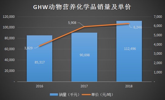 这种突发机会一般来自两种情况,一是竞争对手因为意外情况停产导致价格上涨,二是因为市场的突发需求。有时候突发需求还会演变成长期增长,GHW的第二大业务动物营养化学品就是这种情况。该业务在2016年的收入占比是20.3%,2018年提高到32.6%。同时在销量和单价上,也出现量价同升的局面。