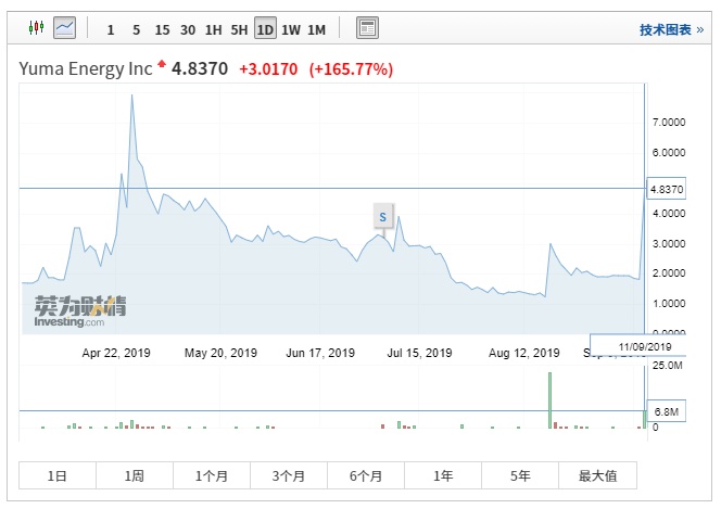 智通财经APP获悉,今日(9月11日)美股开盘,美国石油天然气公司Yuma Energy(YUMA.US)涨165.77%,报4.837美元。
