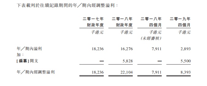 集团年内经调整溢利由2017年财政年度的约1820万港元增加至2018年财政年度的约2210万港元。到2019年前四个月,期内经调整溢利约为840万港元,较2018年前四个月约790万港元增加约50万港元。年期内经调整纯利增加主要是由于2018财政年度及2019年四个月的总收益因销售及分销酒店客房及提供汽车租赁服务的收益增加而上升。