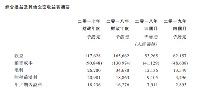 集团在2017财政年度、2018年财政年度及2019年4个月,总收益分别约为1.176亿港元、1.657亿港元及6220万港元,总收益增加主要由于酒店客房销售及分销产生的收益增加,2017年财政年度、2018年财政年度及2019年4个月分别占总收益的约94.8%、94.0%及92.4%。