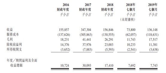 截至2018年12月31日前3个年度,及截至2018年和2019年1到7月,毛利为1823万,4144万,2629万,11743万和1751万令吉。