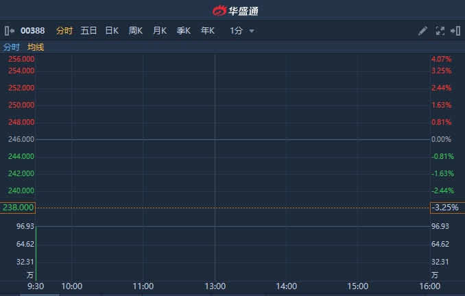 智通财经APP获悉,9月11日港交所(00388)宣布,已向伦交所的董事会提议将港交所及伦交所两家公司合并。该交易作价约2868亿港元,每股溢价近23%。市场解读该交易难以达成,港交所早盘低开3.25%,报238港元,成交额2.46亿港元。