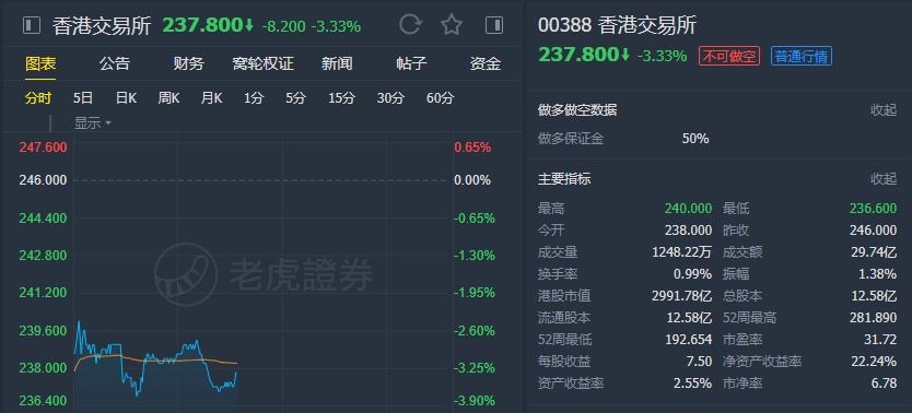 该行表示,港交所的目标价为240港元,投资评级为“中性”。