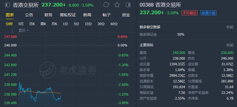该行表示,维持港交所评级“中性”,维持目标价255港元。