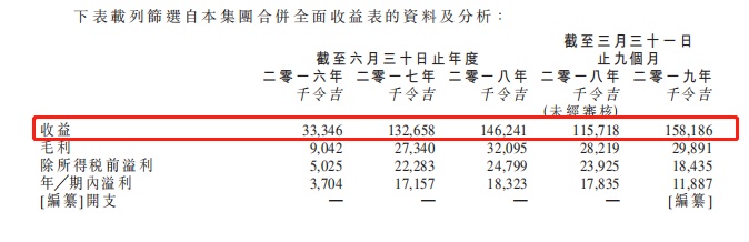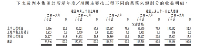 集团的整体收益由截至2016年6月30日止年度3334.6万令吉,增加约298.5%至截至2017年6月30日止年度1.32658亿令吉,主要由于集团土木工程项目、工地准备工程项目及建筑工程项目所得收益增加所致。集团的收益由截至2017年6月30日止年度1.32658亿令吉,增加约10.2%至截至2018年6月30日止年度1.46241亿令吉,主要由于集团土木工程项目、工地准备工程项目及建筑工程项目所得收益增加所致。集团收益由截至2018年3月31日止九个月1.15718亿令吉,增加至截至2019年3月31日止九个月1.58186亿令吉。