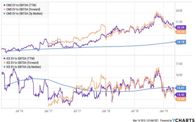 如上图,CME的EV/EBITA一直在3年的平均线以上。