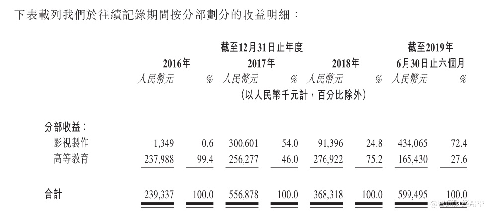 因此,2016年至2018年,高毛利的高等教育业务实现毛利分别为1.24亿元、1.39亿元、1.59亿元,毛利率分别为51.9%、50.5%、55.6%。而2016年至2018年,华夏视听传媒的分别净利润分别为9275.8万元、1.8亿、1.49亿元,这华夏视听传媒虽然是中国著名跨国影业集团,但是高等教育才是业绩支柱。