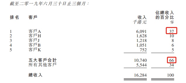 公司的五大客户主要包括香港蓝筹股上市物业发展商、香港物业发展商及酒店经营商。截至2017年、2018年以及2019年3月31日止三个年度以及截至2019年6月30止三个月,五大客户分别为公司收入贡献约58%、51%、56%及66%,客户相对集中。其中,2019年最大客户对收入贡献占比为37%,历年来对公司总收入的贡献较为稳定。