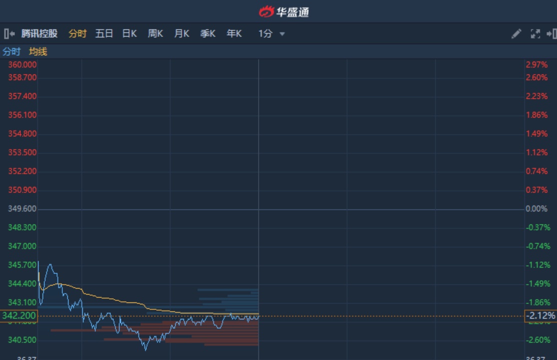 港股异动︱盘中现大手成交涉资11.79亿 腾讯(00700)现跌2.12%