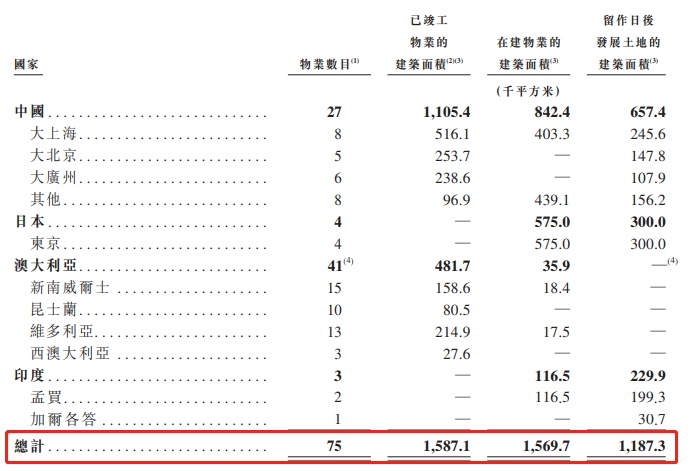 截至2019年6月30日,资产管理规模约为202亿美元(其中27亿美元来自资产负债表),包括建筑面积约8.5百万平方米的已竣工物业、建筑面积约4.4 百万平方米的在建物业(我们预期于未来两至五年内竣工,其规模预期将占我们当前已竣工物业建筑面积一半以上)及建筑面积约2.4百万平方米的留作日后发展的待施工土地,建筑面积合共超过15.3百万平方米。