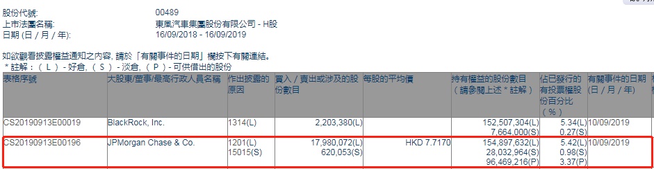 智通财经APP获悉,联交所最新资料显示,9月10日,摩根大通减持东风(00489)1798.0072万股,每股作价7.717港元,总金额约为1.39亿港元。减持后最新持股数目约为1.55亿股,最新持股比例为5.42%。