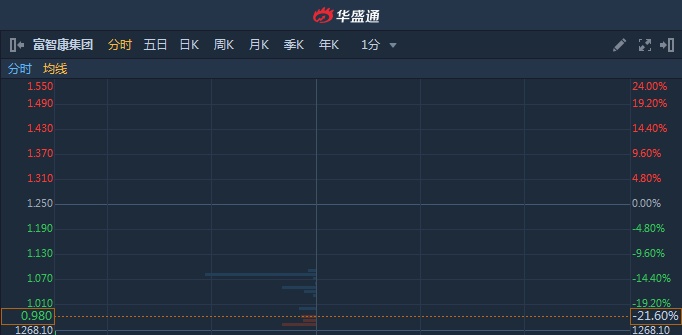 智通财经APP获悉,据中新网报道称,鸿海集团创办人郭台铭于9月16日晚发布声明表示,决定不参与2020年台湾地区领导人选举。富智康集团(02038)早盘股价大幅低开,截至9时20分,跌21.6%,报价0.98港元,成交额1243万。