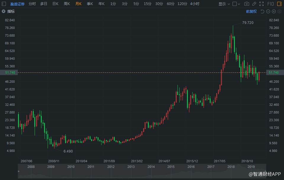 根据智通财经APP了解,盈透证券2006年的净利润是7.34亿美元,2018年净利润是1.69亿美元。十多年来,净利润减少超过70%,不过股价从上市开始算起来,上涨超过200%。上涨主要发生在两个时期,2013~2015年和2017~2018年。第一个时期是市场对盈透的认知从折扣经纪商转型为互联网券商,第二个时期是盈透的网络效应不断加强,将客户从佣金较高的券商中吸引过来。
