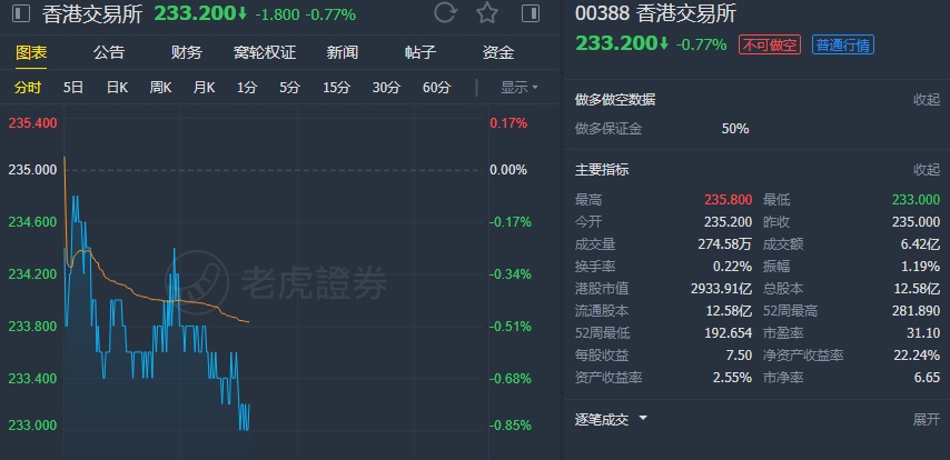 该行表示,伦交所拒港交所的收购要约,是符预期的结果,但相信市场会预期港交所会再次提价,故股价会短期受压,予“中性”评级,目标价240港元。
