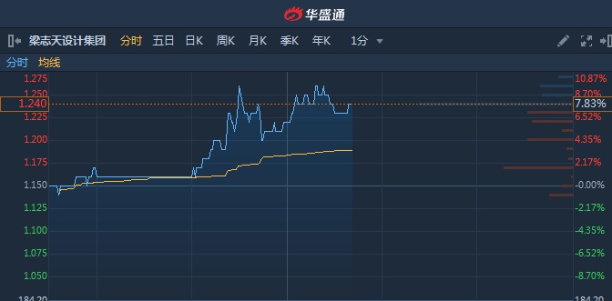 智通财经APP获悉,梁志天设计集团(02262)盘中一度升逾9%,高见1.27港元,创历史新高。截至13时39分,涨7.83%,报价1.24港元,成交额1585万。
