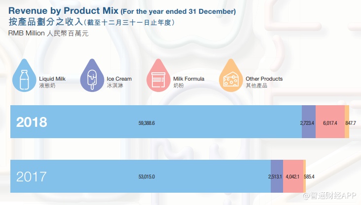 据智通财经APP了解,相比贝因美、伊利、澳优等公司,蒙牛的奶粉业务起步较晚,占比较低,主要通过收购的君乐宝及雅士利开展的奶粉业务,不过多年来受雅士利拖累,一直处于亏损状态。2018年,蒙牛奶粉业务收入为60.17亿元,同比增长48.9%,占总收入的8.72%,也是在这一年,奶粉业务才终于扭亏为盈。