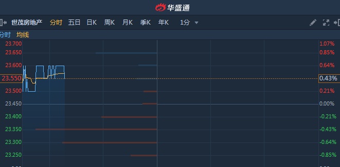 港股异动︱盘中现大手成交涉资1.29亿 世茂房地产(00813)现涨0.43%