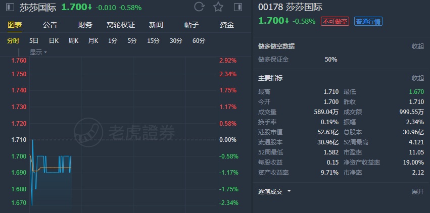 该行称,展望未来,虽然莎莎接近年尾去年同期的可比基数较低,但公司发展能见度仍低;同店销售下跌导致的经营去杠杆部分可被减租、节省员工成本以及广告及推广开支减少所抵销。