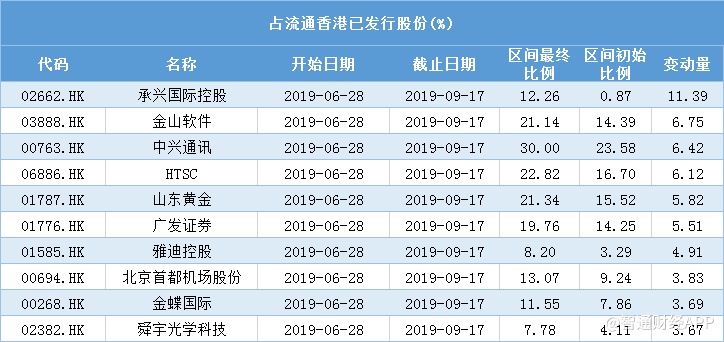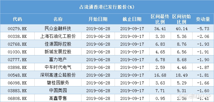 据Choice金融数据统计,沪深港股通中央结算持股记录显示,金山软件(03888)、中兴通讯(00763)、华泰证券(06886)、山东黄金(01787)、广发证券(01776)等明显过得获得南下资金追捧,港股通持股比例超过5%;而民众金融科技(00279)、上海石油化工股份(00338)、佳源国际控股(02768)、新城发展控股(01030)、富力地产(02777)等则遭南下资金冷落,港股通持股比例降幅明显。