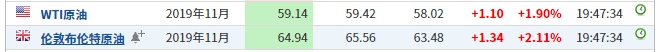 特朗普欲加码对伊制裁,伊朗外长发布一条推文,引发市场担忧波斯湾地区可能出现武装冲突,油价大幅上涨。截至发稿,WTI原油涨1.90%,报59.14美元/桶。布伦特原油涨2.11%,报64.94美元/桶。