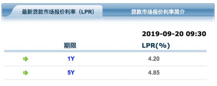 8月20日,改革后的新一期LPR发布,1年期LPR为4.25%,比原来的贷款基准利率(4.35%)低10个基点,比之前的LPR降了6个基点,5年期以上LPR为4.85%。