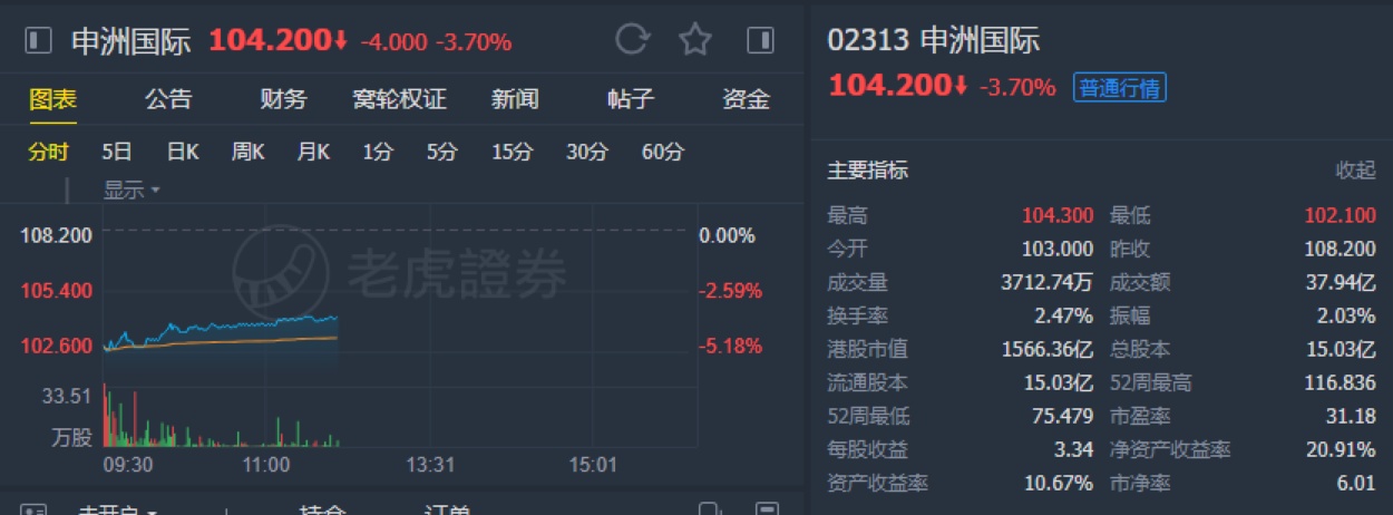 该行称,申洲国际控股股东进行配股减持,通常会影响市场对该股的投资情绪,短期股价会下滑,但无论如何,相信不会影响公司中期业务轨迹,该行对其基本面保持信心,维持对其“增持”投资评级及目标价124元,此相当预测未来12个月市盈率22倍。