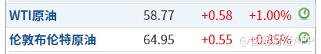 伊朗战争警告加剧中东紧张局势,全球最重要产油国地区不稳定加剧,推高油价风险溢价。截至发稿,WTI原油涨1%,报58.77美元/桶。布伦特原油涨0.85%,报64.95美元/桶。