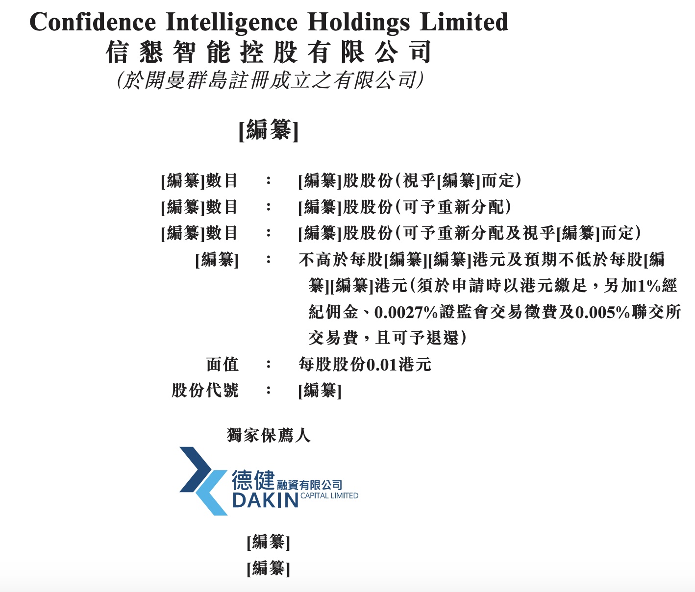 智通财经APP获悉,据港交所9月20日披露,信垦智能有限公司向港交所递交上市申请,德健融资有限公司为其独家保荐人。