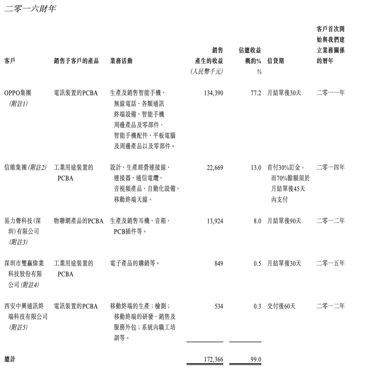 公司的客户主要包括中国及美国的电子产品制造商、OEM及品牌拥有人。于2016财年、2017财年、2018财年及截至2019年4月30日止四个月,我们向五大客户作出的销售分别占我们总收益约99.0%、98.3%、90.2%及80.9%,而我 们的最大客户分别占我们总收益约77.2%、68.2%、53.8%及38.9%。