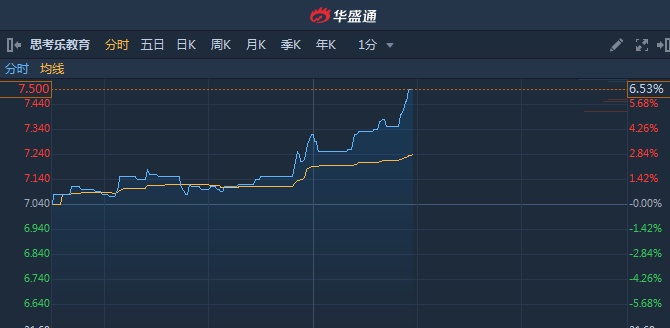 智通财经APP获悉,思考乐教育(01769)曾获天风证券看高至12港元,近期股价连续攀升,今日午后高见7.5港元,再创上市新高。截至13时56分,涨6.53%,报价7.5港元,成交额1208万。