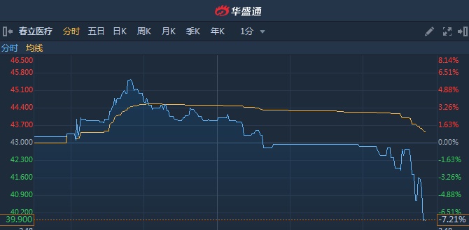 智通财经APP获悉,春立医疗(01858)盘中曾一度高见45.55港元,创历史新高,但尾盘股价快速回吐,倒跌逾7%,截至15时50分,跌7.21%,报价39.9港元,成交额1340万。