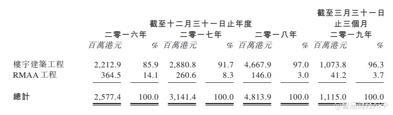 华营建筑集团于1967年成立,拥有50年经验,是香港领先的建筑承建商之一。公司在香港作为总承建商主要承接公私营机构的楼宇建筑工程及RMAA工程项目。根据灼识报告的资料,截至2018年12月31日止年度,按来自楼宇建筑工程的收益计,公司在香港的所有总承建商中排名第三,占市场份额约5.2%。