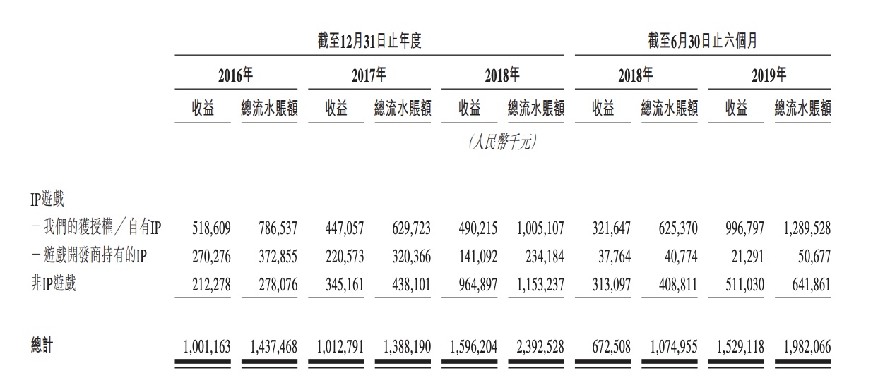 公司向游戏开发商提供游戏发行服务产生大部分收益,并与手游生态系统中的其他参与者分占游戏玩家所支付的部分总流水账额。第三方发行渠道自游戏玩家收取总流水账额,经扣除第三方发行渠道的总流水账额分成后,便会向公司转汇部分总流水账额。公司保留自发行渠道收取的总流水账额,并扣除指定百分比的金额,余下款项则会转汇给第三方游戏开发商及IP版权方。2018年9月,公司收购本身的发行平台(即胜利俱乐部)。就胜利俱乐部发行的游戏而言,公司直接从付款渠道收取总流水账额。公司的大部分游戏乃按免费畅玩的形式营运,所以玩家可免费畅玩游戏,只需付费购买虚拟货币才可兑换游戏内的虚拟物品。公司将虚拟货币的货币价值记录为总流水账额。在往绩记录期间,公司的大部分游戏均由第三方游戏开发商开发及授权代理。