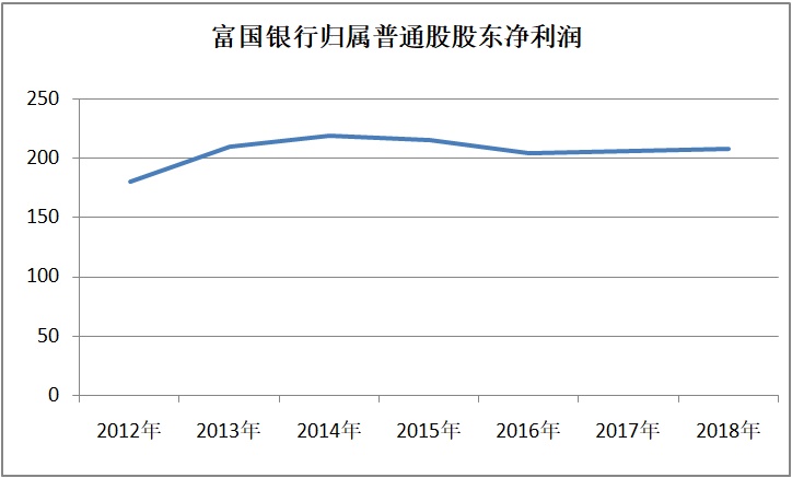 二、营业收入基本上是一条直线。富国银行这几年营业收入的增长最快也不超过3%,最慢也是降低2%之内,所以2012-2018年营业收入基本上是一根直线,总共增长了0.4%。