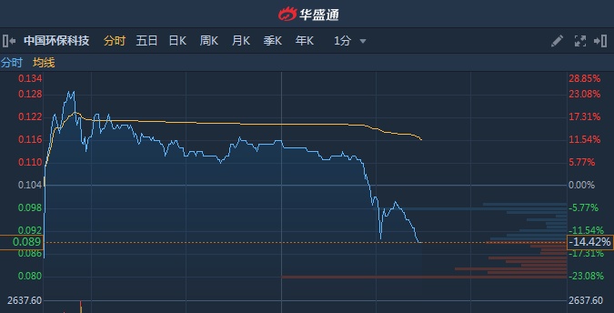 智通财经APP获悉,中国环保科技(00646)高开低走,午后倒跌14%,振幅达41.35%,截至14时27分,跌14.27%,报价14.42港元,成交额5604万。值得注意的是,该股此前两日累计涨幅达333%。