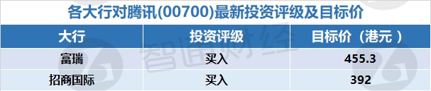 二、各大行对腾讯(00700)最新投资评级及目标价