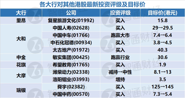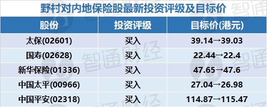 三、各大行对中国太保(02331)最新投资评级及目标价