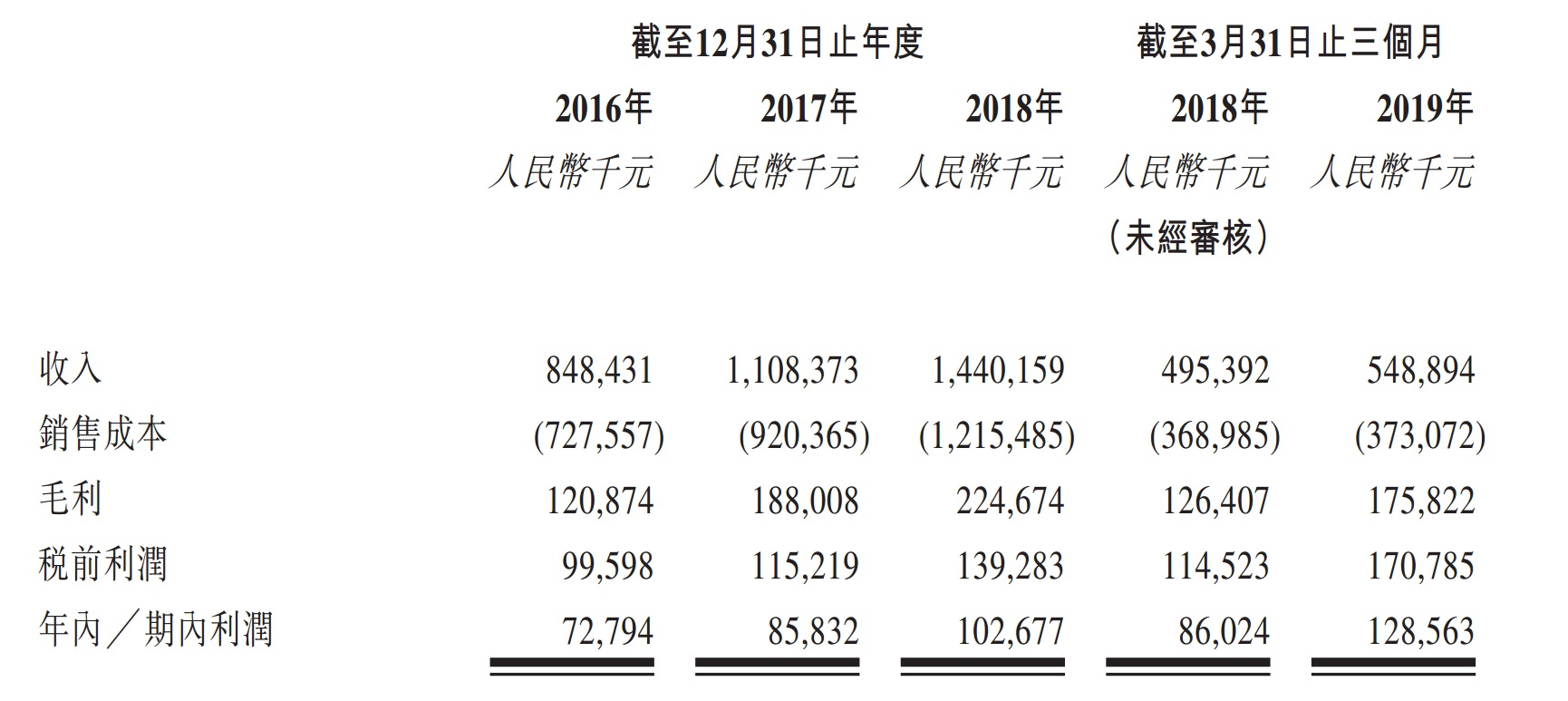财报显示,2016-2018年,营收分别为8.48亿、11.08亿、14.4亿,复合年增长率约为 30.3%,净利润为7280亿、8580亿、1.03亿,复合年增长率约为18.8%。截至2019年3月31日止三个月的利润由4250万元大幅上升49.5%至1.29亿元,净利率飙升至23.4%。