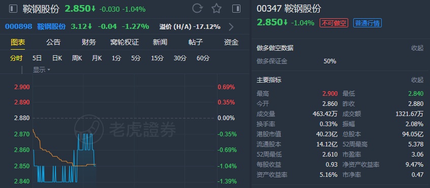 该行表示,考虑利润率下滑,降低鞍钢2019至2021年每股盈利2%至28%,目标价由3港元降至2.5港元,相当于今年预测市盈率7.5倍,评级“跑输大市”。