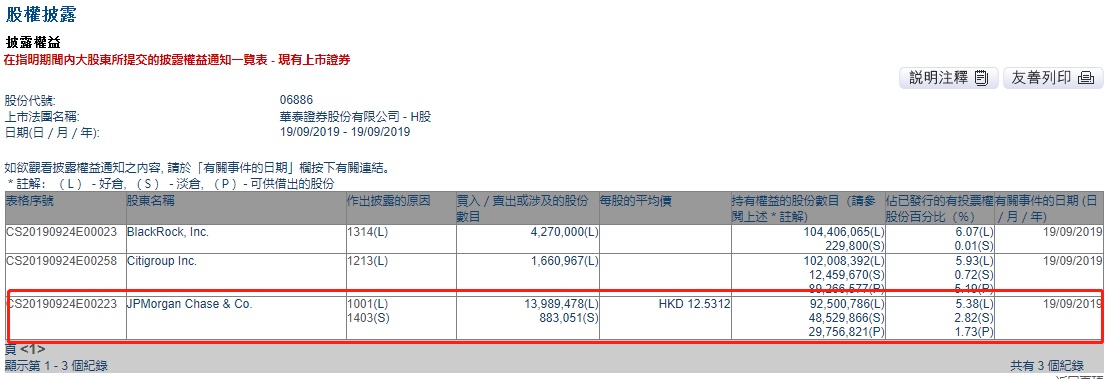 智通财经APP获悉,联交所最新资料显示,9月19日,摩根大通增持华泰证券(06886)