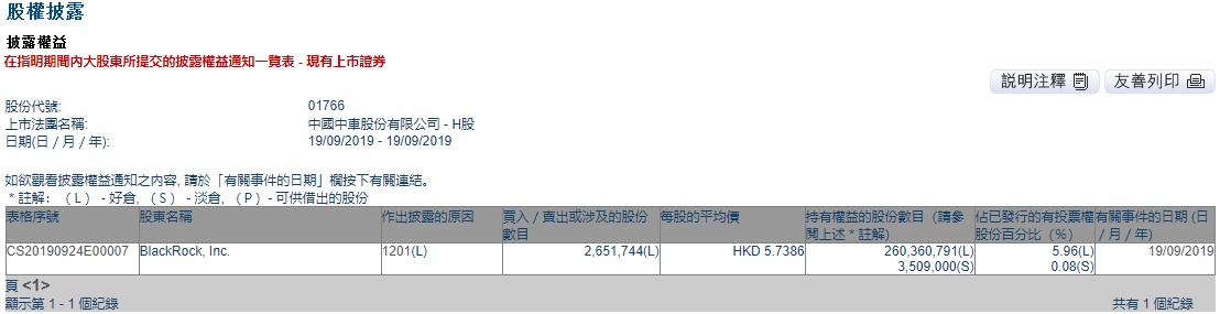 智通财经APP获悉,联交所最新资料显示,9月19日,贝莱德减持中国中车(01766)