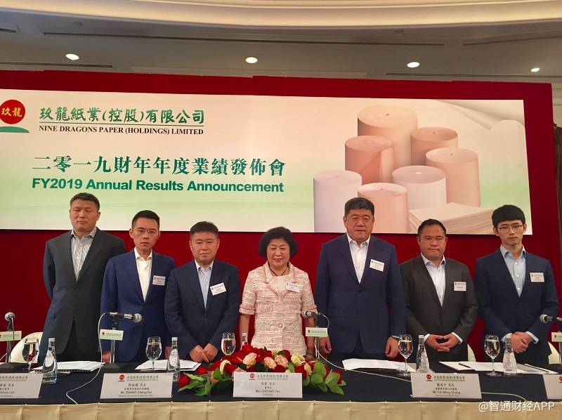 公告显示,2019财年,玖龙纸业实现销售额为546.47亿元(人民币,下同),同比增长3.5%;毛利为84.39亿元,同比下降27.2%;股东应占溢利为38.6亿元,同比下降50.8%。每股基本盈利为0.82元,拟派末期股息每股18分。