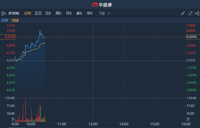 智通财经APP获悉,新城发展控股(01030)早盘直线拉涨逾6%,股价创两个月新高。截至发稿,涨4.69%,报6.92港元,成交额7462.1万港元。
