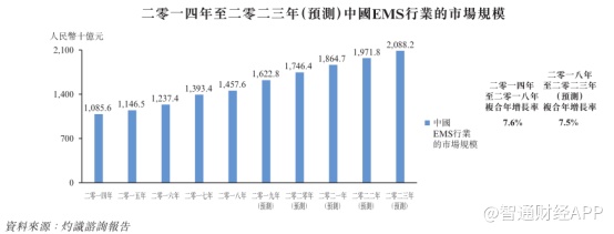 从行业前景来看,根据灼识谘询报告,中国EMS行业市场规模在2014-2018年间的复合年增长率为约7.6%,增长率主要由电讯、物联网及工业用途装置三个下游市场带动,预期2018-2023年将维持相对稳定的增长速度。