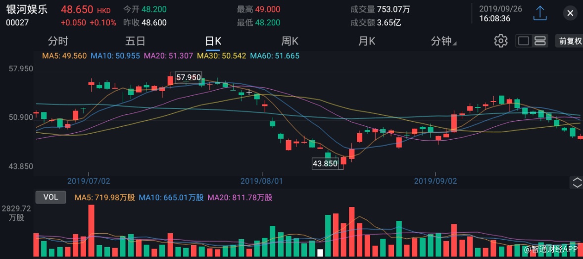 截至今日收盘,银娱(00027)涨0.10%,报48.65港元。