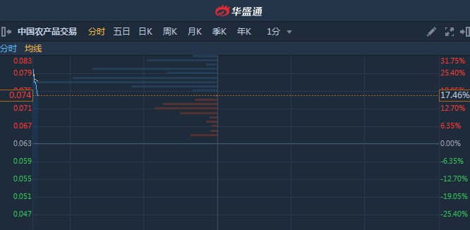 智通财经APP获悉,中国农产品交易(00149)获位元堂(00897)溢价44.44%提部分股份要约收购,受消息刺激早盘大幅高开,截至9时33分,涨17.46%,报价0.074港元,成交额821万。