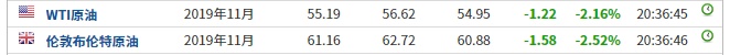 截至20:30,WTI原油跌2.16%,报55.19美元/桶。布伦特原油跌2.52%,报61.16美元/桶。