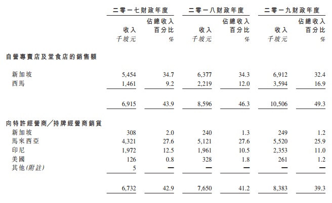 其于2017财年至2019财年的整体收入增加,主要由于销售产品收入因开设新自营专卖店及堂食店与非自营专卖店及堂食店以及已售产品的售价上升而增加。