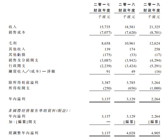 于2017财年、2018财年及2019财年,该公司的收入分别约为1570万新加坡元、1860万坡元及2130万坡元;纯利则分别约为310万坡元、310万坡元及230坡元。